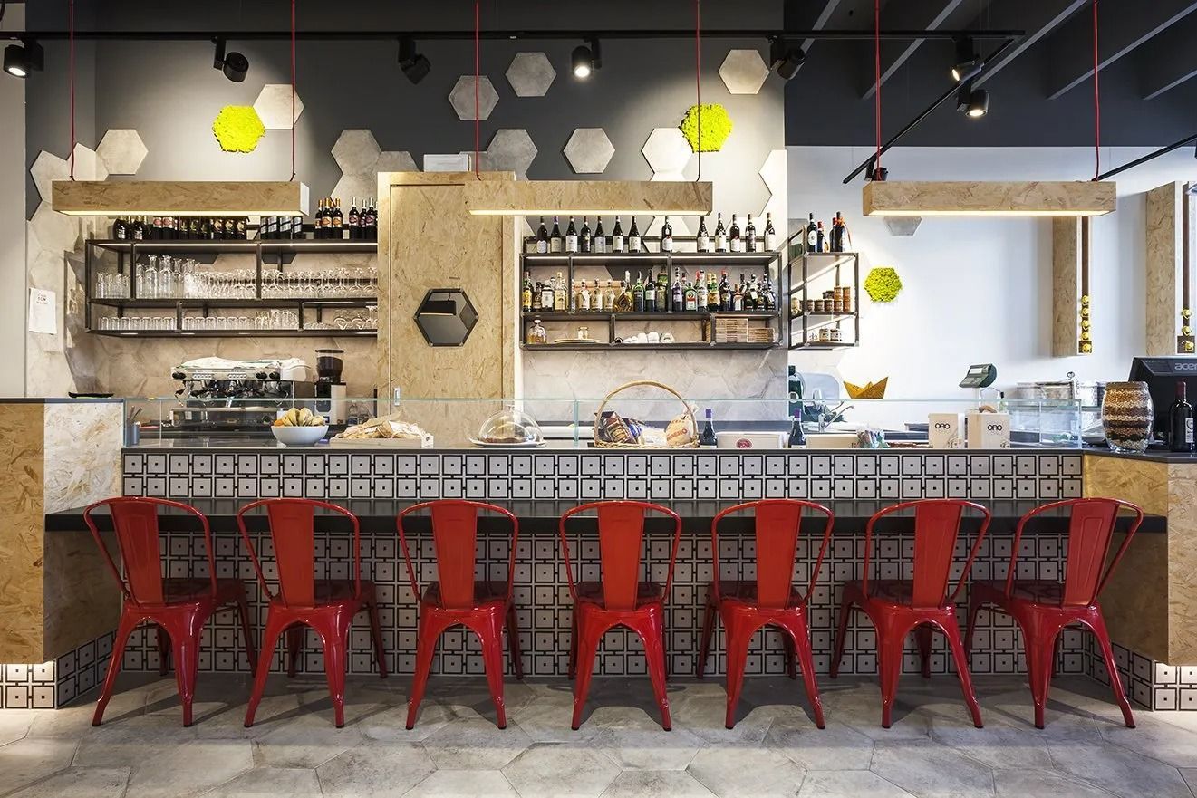- Bancone e back bar su misura per servizio rapido e ordinato.